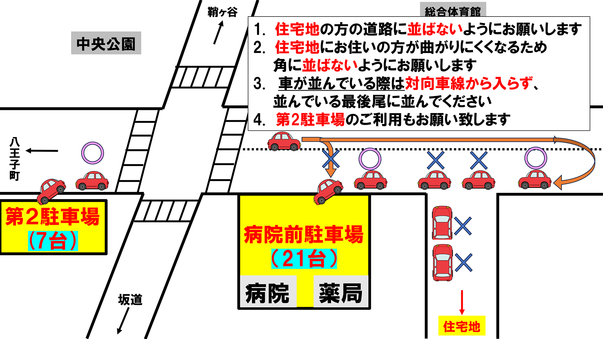 アクセス 2025/11/07 マップ 駐車場のご案内 マップ 北九州市小倉北区上到津4丁目24−24 北九州市立総合体育館前バス停 徒歩1分 到津の森公園前バス停 徒歩7分 駐車場あり 駐車場のご案内 駐車場内の事故・盗難等につきましては一切責任を負いかねます 駐車枠を守り正しい位置に駐車して下さい 当院敷地内駐車場17台 隣接薬局駐車場4台 第2駐車場7台 ❶ 中央緑地公園の交差点を八幡カトリック方画に直進する ❷ 1つ目の横断歩道を左折 ❸ 駐車場に入って右手7台(駐車場番号: ⑦ ⑧ ⑨ ⑩ ⑪ ⑫ ㊺ ※45は軽) Google Mapで見る